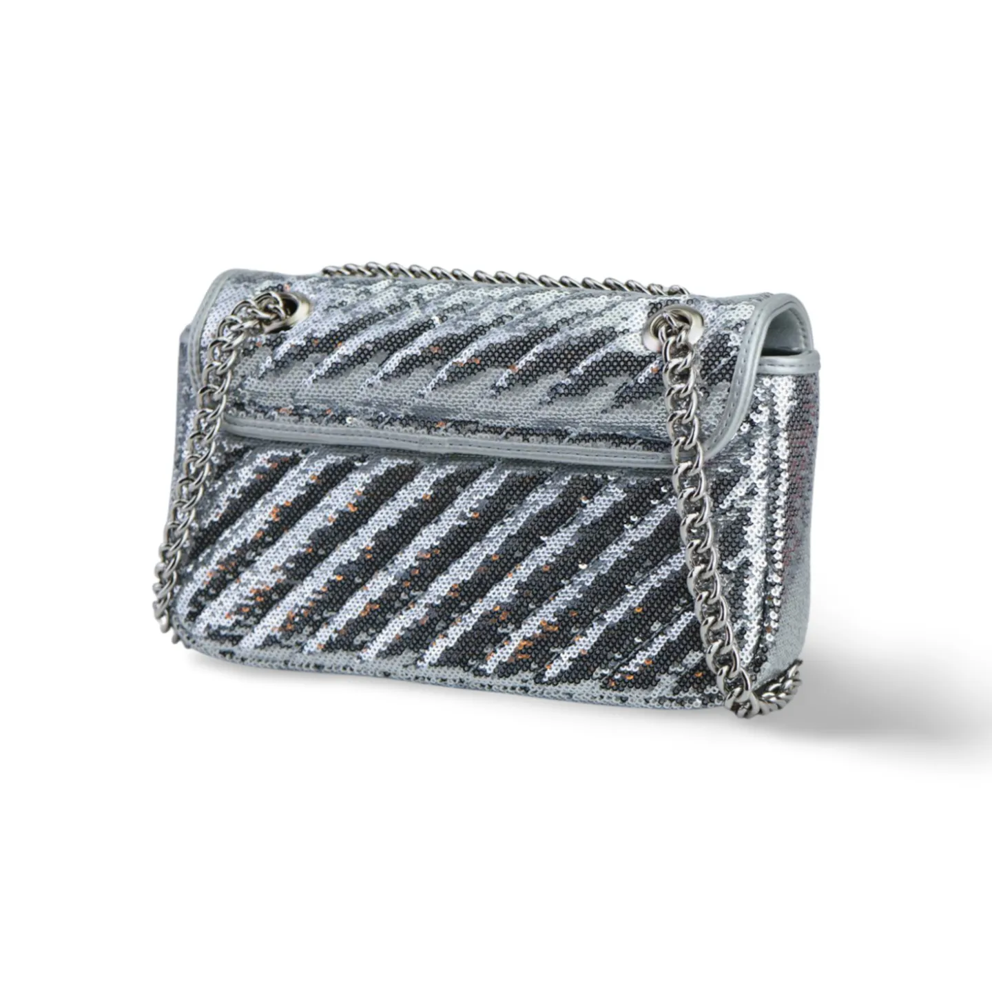 This stunning with a silver chain is sure to turn heads wherever you go. It's made of high-quality materials and is sure to last for years to come. The bag is perfect for any occasion, from a night out on the town to a special event. It's also a great size for everyday use, with plenty of room for your essentials.